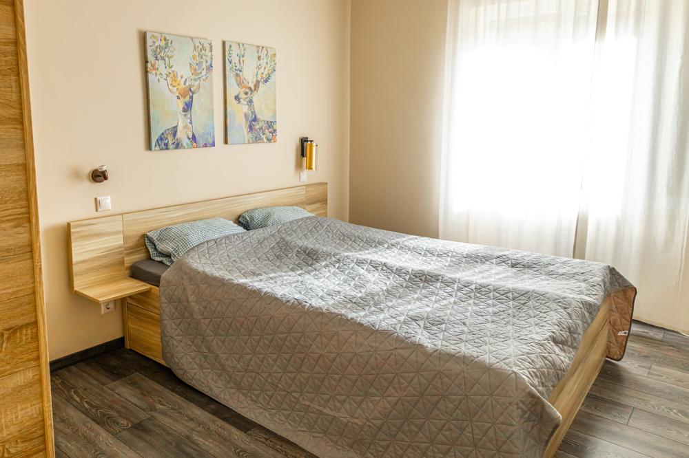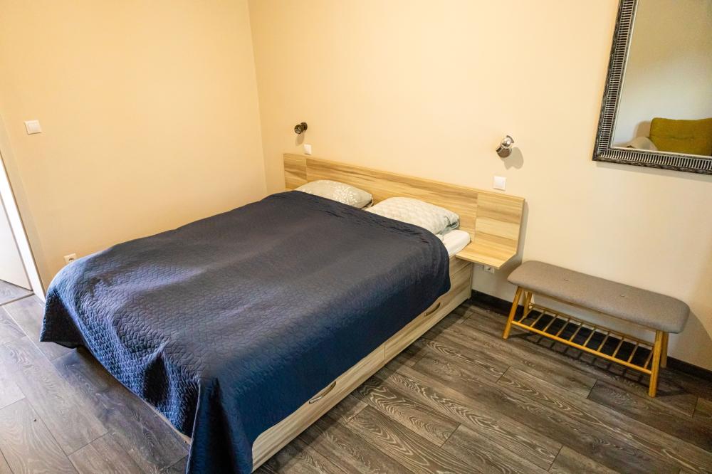- Ágytípusok: 1x Egyszemélyes ágy, 1x Nagy franciaágy, 1x Extra nagy ágy, 1x Kanapéágy